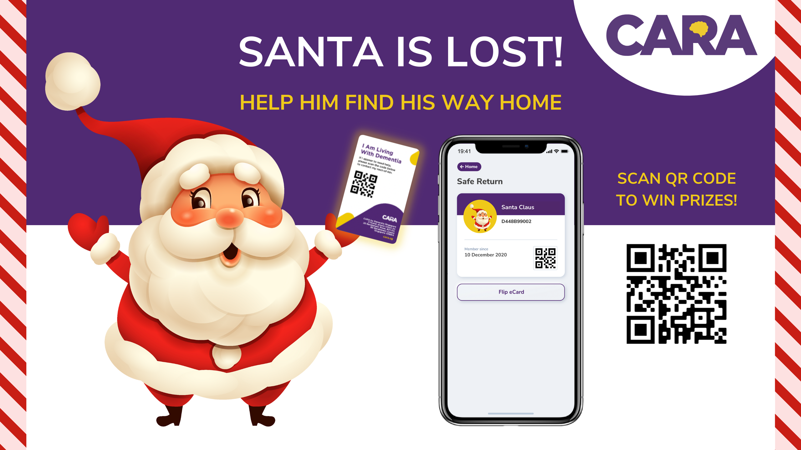 But thankfully, Mrs Claus has applied for a CARA Card for him. With the Safe Return function by CARA, the community and friends can all play a part to reunite Santa with Mrs Claus! Can you help Santa safely return to the North Pole?